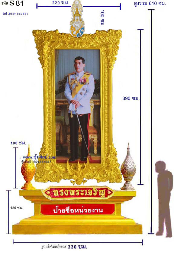 – ภาพพระบรมฉายาลักษณ์ ด้านในกรอบขนาด 120 x 290 ซม.